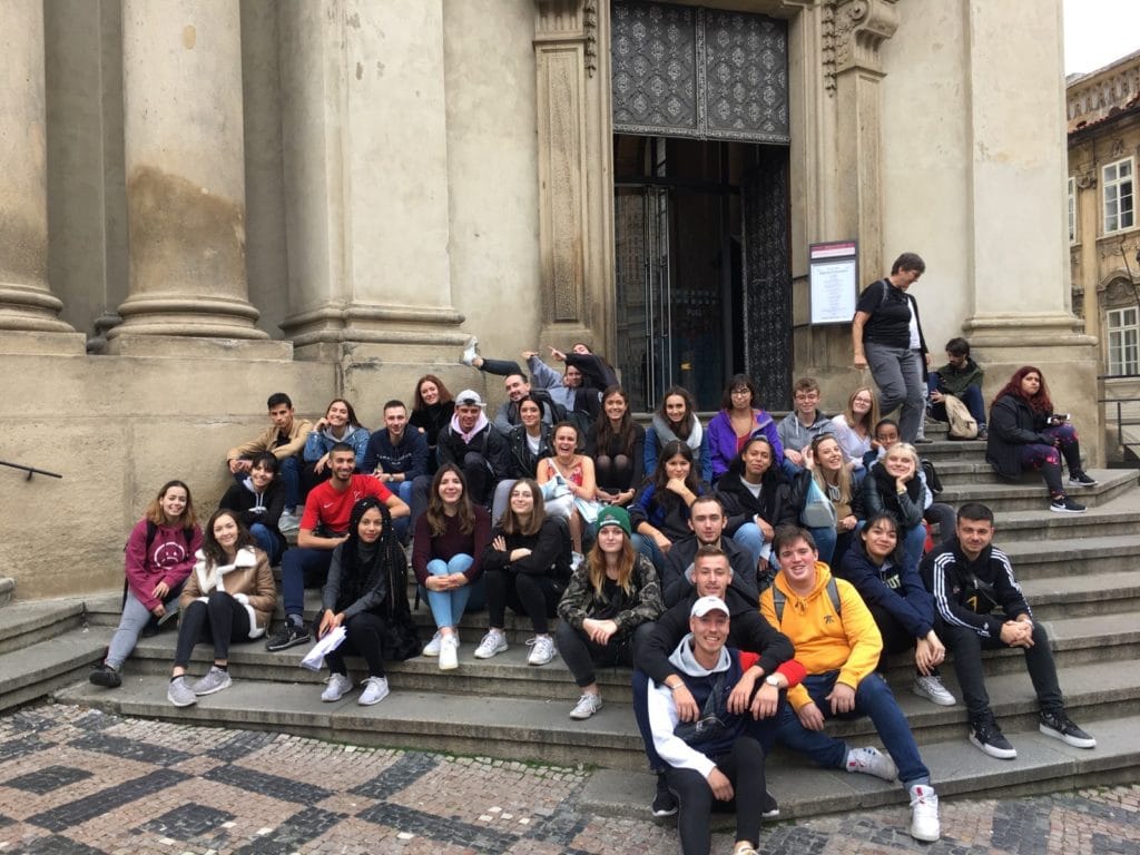 Nos étudiants sont allés à la colline de pétrin  où ils ont  pu monter dans la tour de Pétrin afin d’avoir une vue panoramique sur toute la ville de Prague, par la suite, ils ont pu redescendre dans le centre-ville  puis direction  l’hôtel international où ils sont rentrés dans le hall et faire une visite. Les visites se sont poursuivies et leurs commentaires se sont faits au cœur du  patrimoine de la vieille ville. Les étudiants se sont frottés à la difficulté de la gestion de groupe dans un contexte de tourisme de masse.